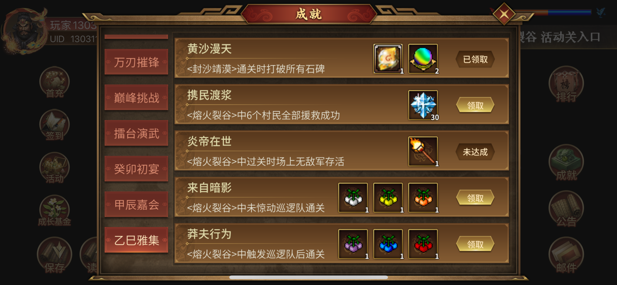 炎帝在世:估计要张飞2阶皮 我没有也没办法试。莽夫行为:揍到3个一排的兵旁边触发就行 触发一次就行 最好留一个兵 等救最后的村民 在触发来自暗影:3个一排的兵不接触用法术杀 或者一次性杀3个 携民渡浆:6个村民都救出来 保护村民到底部救村民时靠近就会变友军 最好一次性把旁边的敌军 都杀掉 然后张飞上去对话 必须对话 不然村民不会往底部走靠近 最后一组村民时 会出一大波怪 优先保护好村民
