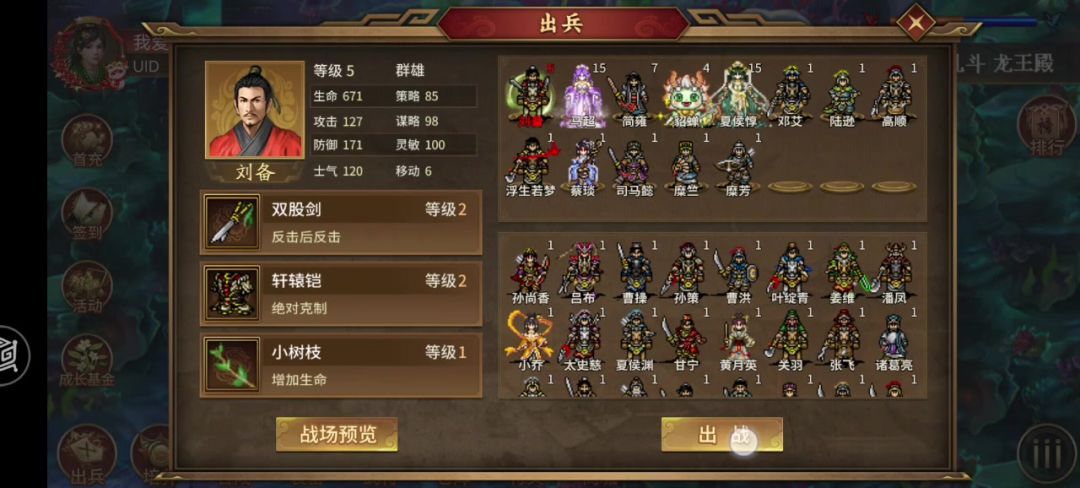 第七关 占领3个鹿柴 需求没有刘备这关需要 2动 穿越 隐身刑天过去吧鹿柴上的人拉出来 在站鹿柴以下6关只需要隐身糜芳 隐身糜芳出站3号位1 或2号出站位上简大爷第六关阻挡敌军接近上方兵营我军把兵营9宫范围占了第10关 到达指定地点 我军有上场3人和6人的 隐身人物出站3号位向 坐标(X,11)走 然后向右方到达过关坐标第12关 活到一定回合 这关我军出站人数有不同的,刘备