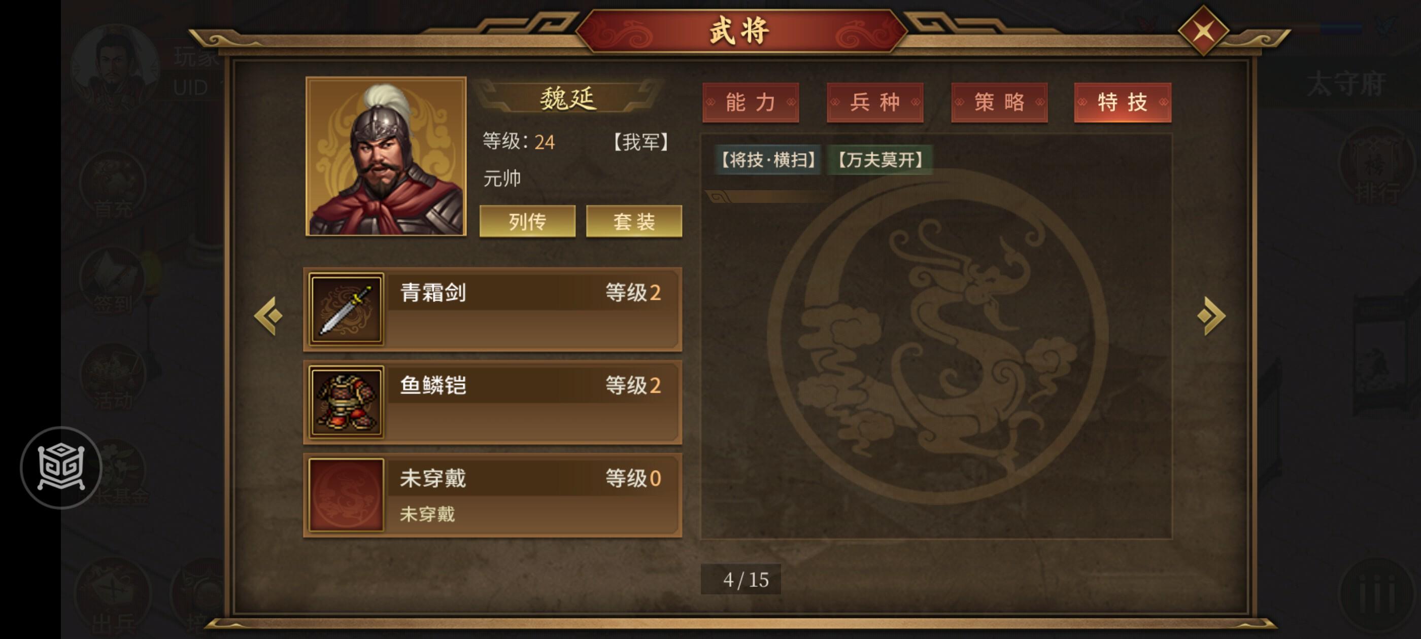 单破军演武砍到5006层了,乌木哥还差2个。出场人员选所有能带枪的,除带可白嫖的各1个:肝帝勋章、小树技、练果神器、旄钺外,其余都带六韬。好奇怪:出场时姜维带的虎头枪,出场后自动切换成圣绿沉枪了,是啥原因呢?除浮生不压级外,所有出场人员吃转生丹压到1级。现休闲慢砍了,平均每天砍100层,争取春节时能砍到1万层拿到大将军皮肤。元宝慢慢攒到4325了,等春节打折时买貂蝉、阴阳师、曹洪,转乱斗玩玩爬
