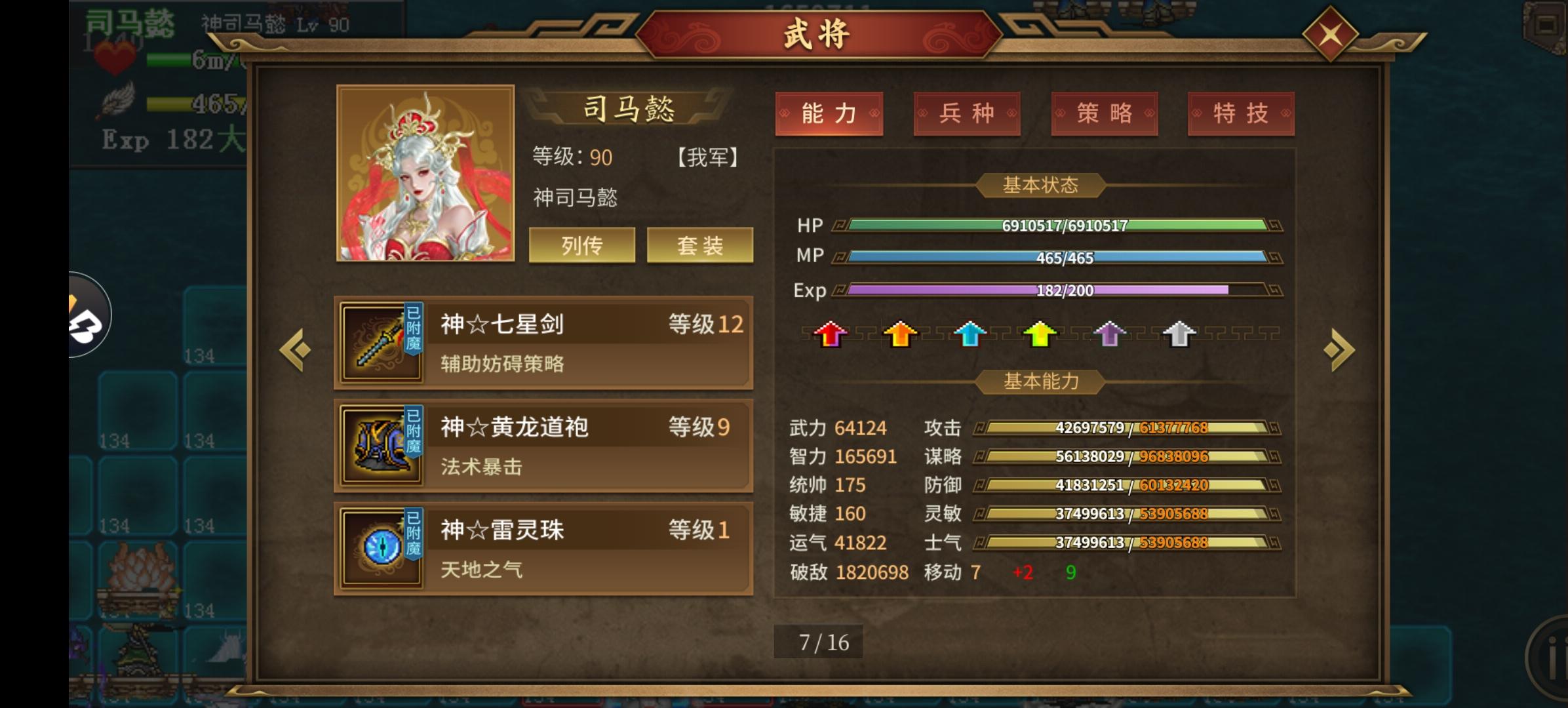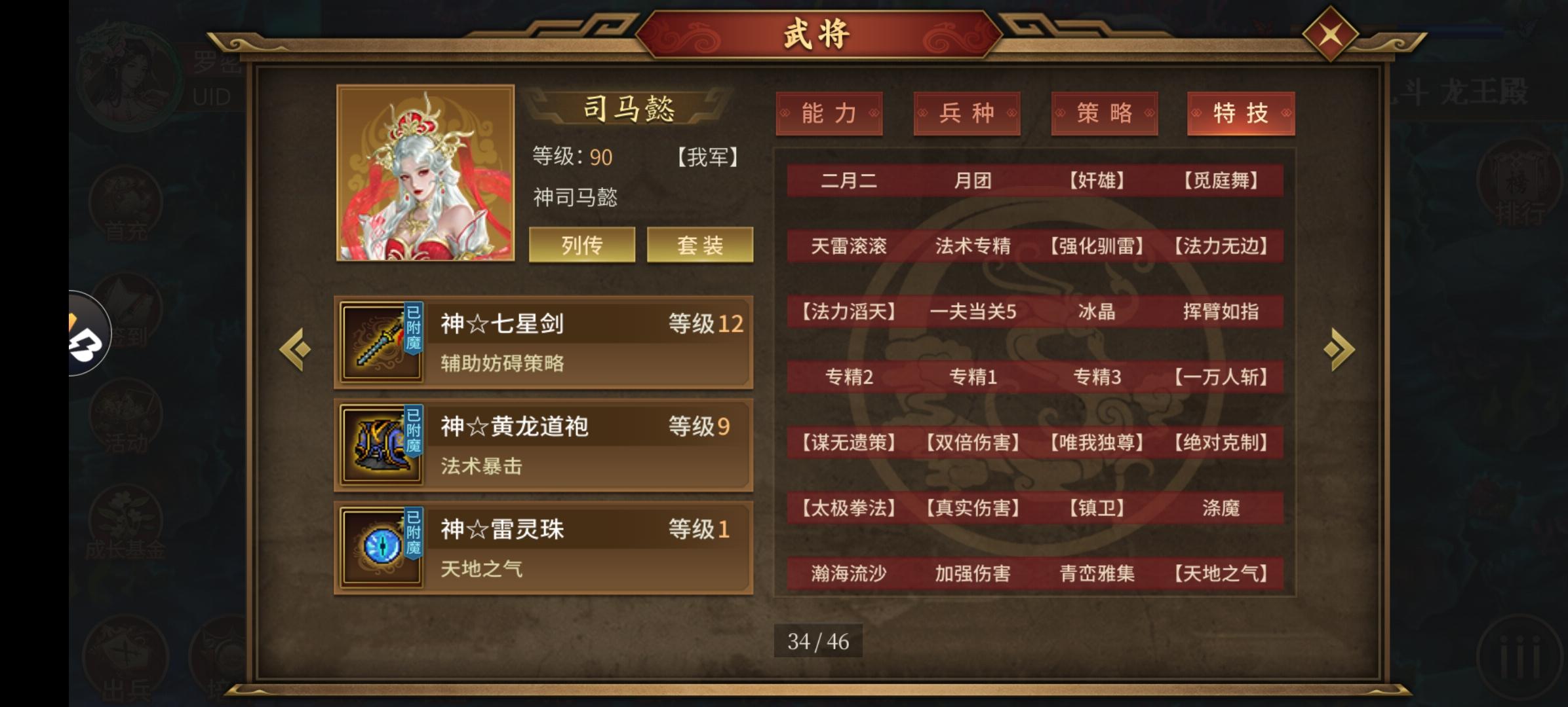 上面是主要培养三个人物,神司马有炸+锐+法必,天罡有无视距离反+物必+锐+镇卫、万人刘备、雷公(未展示有秘典敏攻40%)。目前历史噩梦8,幻想噩梦1。演武3001,大乱斗800#同人圣三国蜀汉传 汉