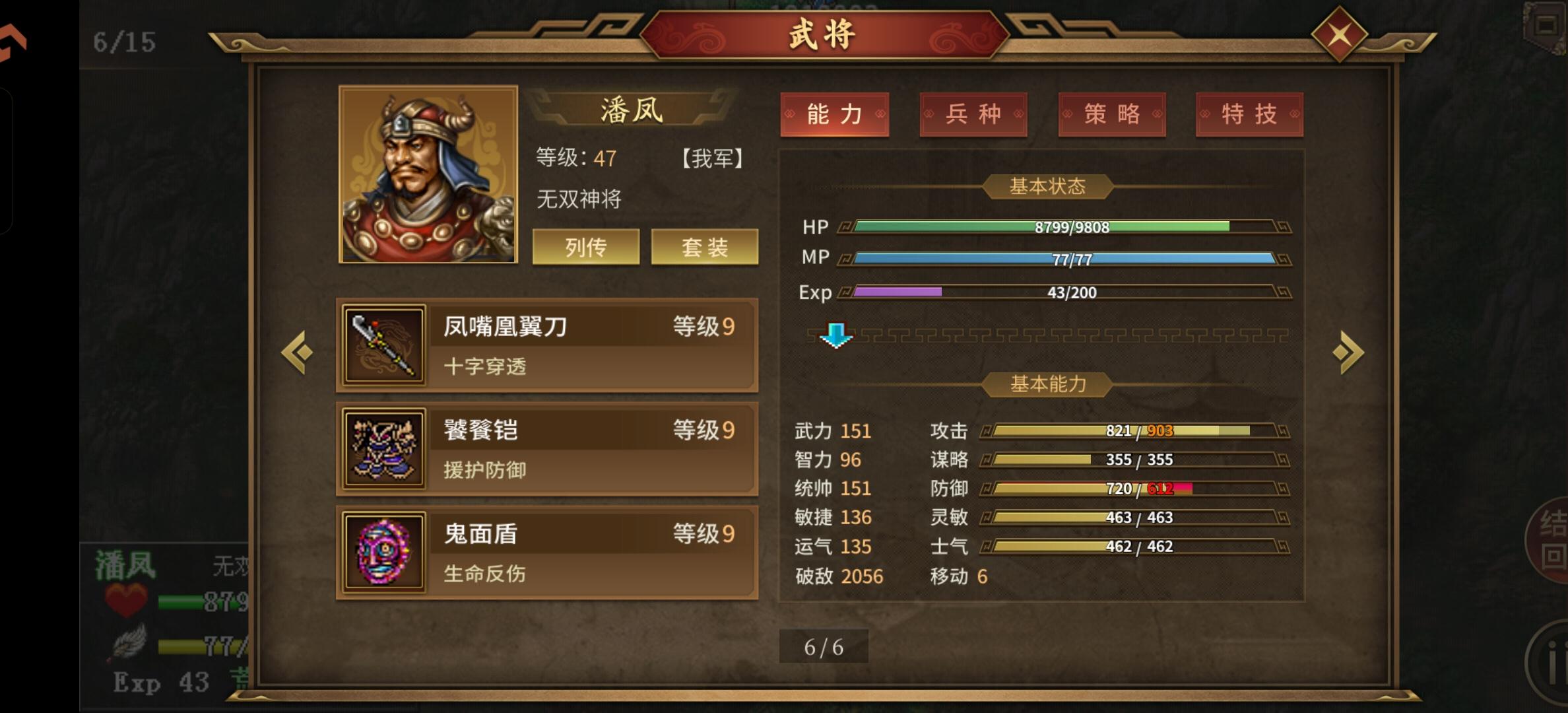 卡在这里了第1个难点,必须先杀军医,法师。要不然一直加血没法打。第2个难点,神吕布有锐不可当,不屈,穿越和11连斩,拦不住,也扛不住,地图太小,一下就冲到面前第3个难点,高顺有状态攻击,还会加血,暴击必防,天克潘凤。只要反不死,一口治疗马上回满。安排了古锭刀和混沌甲,吕布没死不敢上。第4个难点,回合太少。地狱征途,可能就到此为止了吧