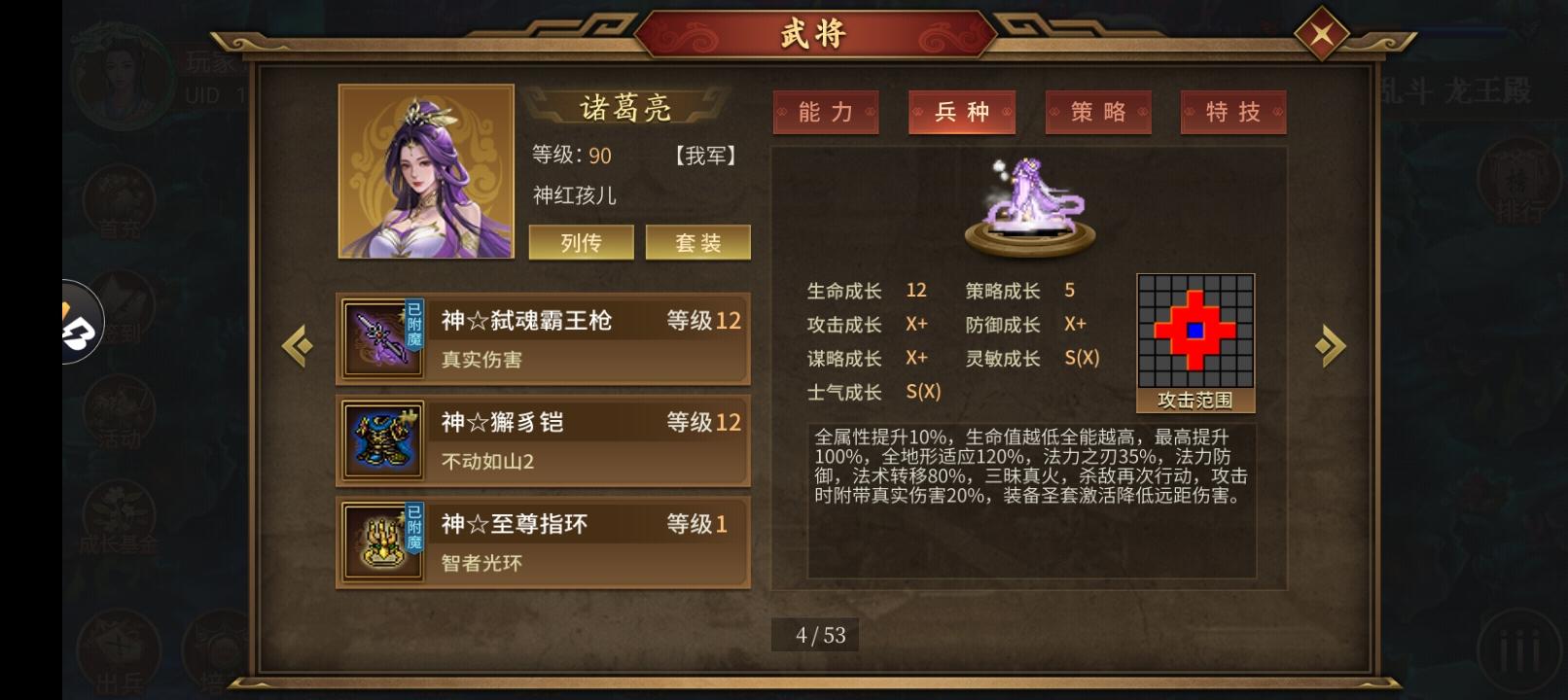 上面是主要培养三个人物,神司马有炸+锐+法必,天罡有无视距离反+物必+锐+镇卫、万人刘备、雷公(未展示有秘典敏攻40%)。目前历史噩梦8,幻想噩梦1。演武3001,大乱斗800#同人圣三国蜀汉传 汉