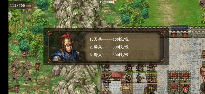 战前不用培养角色,合成大几个攻击果就可以,没有也无伤大雅,1.开局来到出生点下面的城池商人处购买最便宜的粮食,木材或铁矿2.一路跑到左上或左下的城池商人处高价卖出,如果价格低的话就去另一个城池卖出,会出现事件导致地区三个物价发生变化(路上会出现山贼,别在山地和丛林作战,容易被打死)3.在左上和左下城池反复横跳,低买高卖,有钱了然后在左下城池里轻骑兵那里买特技,如图一。在左上铁匠处升级背包,如