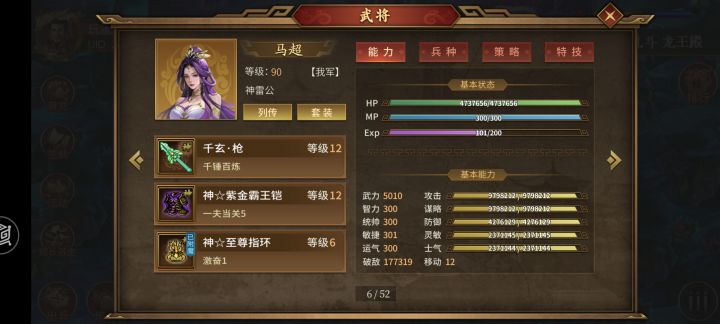 爬塔进度一半了,记录一下大厅和图里的面板,每个图的站位不一样,大概会有个上下10%左右的浮动。游兆主C,马超只吃了非氪金特技当副C用来炸不屈,不过目前马超也是能直接炸死怪的。低氪金玩家建议爬塔考虑马超,爬塔确实很猛。游兆爬塔需要大量的氪金特技来补面板和伤害,对低氪金玩家不是很友好。接下来计划周目毕业后再爬塔,等以后爬塔毕业再发帖记录下。提前祝大家新年快乐,马年大吉!