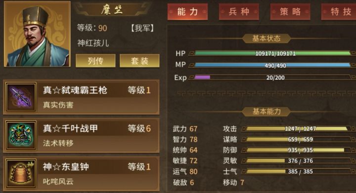 缺元宝,资源全靠白嫖,打算全程不练果,手动砍、砍、砍!初期养糜竺(灵童)、浮生(破军)、刘备(兵仙),第88层合出了3人装备,见图片。糜竺是第1主力,目前总真伤:灵童15+演武大将军15+真霸王枪15+真伤书5+千人斩7=57。曹仁马是打公孙瓒外传领的,后面等元宝够了,升级为圣,多7真伤。不知刘备能坚持多少层?浮生能坚持多少层?若能上2千层,弃养刘备,养曹洪(神兵仙)。若能上3千层,糜竺改套神