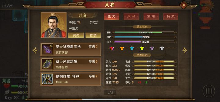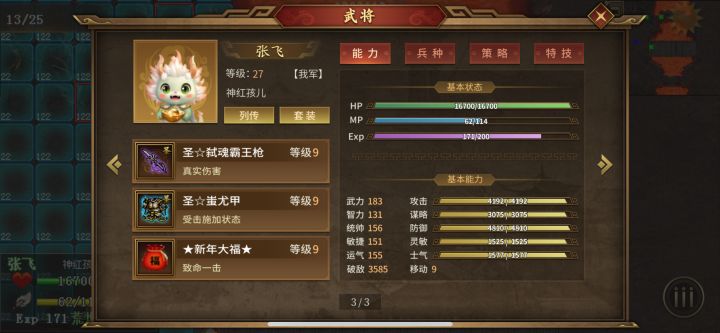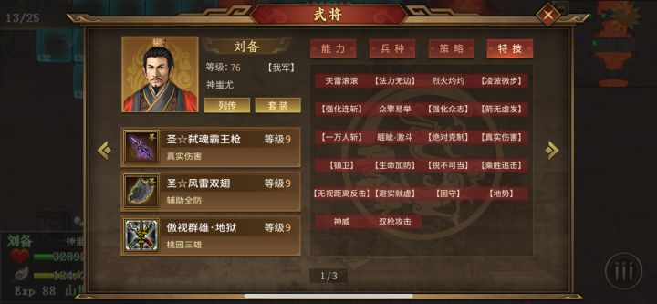 平民玩家只能培养2个武将,一哥肯定是炸图司马懿,菜刀前期可以浮生,吕布,后期就靠真伤武将。主力一:神司马懿 吃智力果和士气果装备:圣套必备特技:见图3,有就吃,锐不可当,谋无遗策,名门士族,生命加智,声东击西,强化驯雷,法力无边,磁力爆发,运筹1,涤魔,法术专精,提升精神1,2,3,地狱,提升士气1,2,3,地狱,真实伤害5%,锦上添花:加血,加法术,加伤害都行,具体看图3_表格,每个玩家