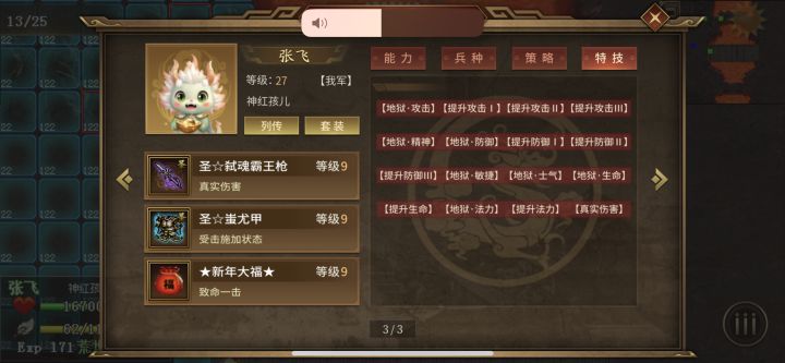 游兆炸 蚩尤砍 有蚩尤后其他剧情人员不吃果都行靠真伤就过了 刘备必吃 锐不可当 乘胜追击 镇卫 (箭无虚发 谋无遗策 资源多可吃避免SL) 关羽必吃 谋无遗策 装备 刑天铠 可不买但要继续刷历史领取到不屈就行张飞 红孩儿+蚩尤甲+玉玺或者新年大福刘备杀蚩尤 后续补个雷击或者把霸王枪神+附魔多5真伤 这样快点 不然就要把怪引到可以穿到蚩尤慢慢磨