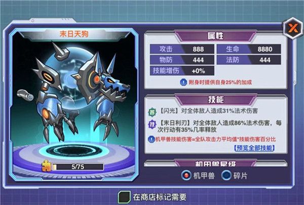 机甲兽,作为《西游梦幻记》游戏中战力的主要组成部分之一,培育投入可是很让人伤脑筋,让我们一起来聊聊初期的机甲兽培育吧!一、机甲兽的优势及作用: 机甲兽不受敌方英雄,技能特性影响(如减伤,眩晕,减怒等);同时自身无血量限制,无法被击杀,是非常稳定的输出点;前期培育投入较低且性价比高,机甲兽的技能伤害将随英雄的逐步成长,逐步加强;机甲兽培育至高阶后,能为上阵武将带来大量的属性加成。二、机甲兽的培