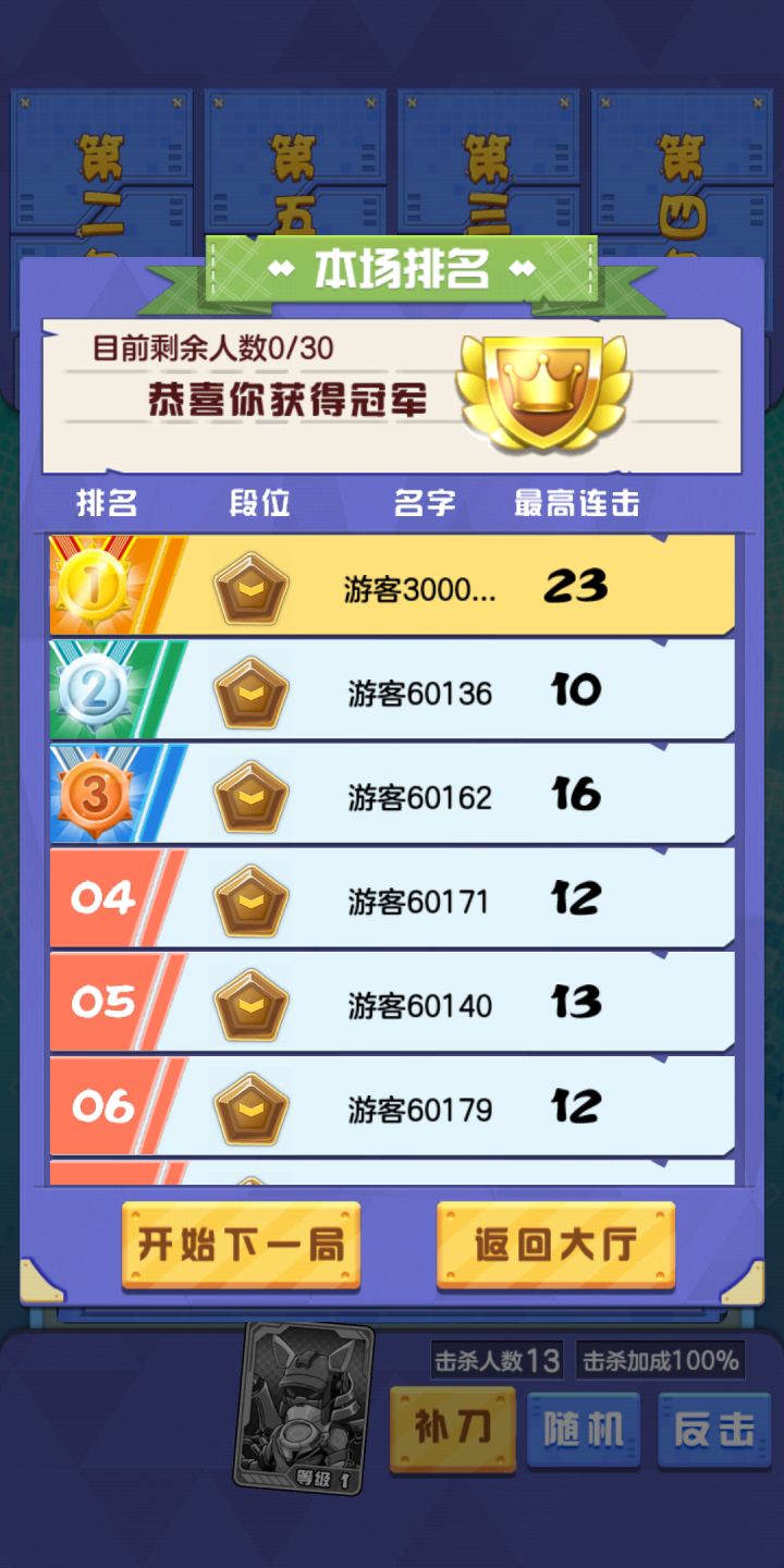 《弹球大乐斗》游戏火爆开测啦!新玩家进入游戏后,如何快速进行战斗,提升自己的段位等级,来看看小编给广大玩家朋友贡献的新手引导吧^_^Y【游戏匹配】只要点击乱斗场按钮即可进入30人乱斗匹配哦,30位玩家的拼图小块组合成了游戏的登录界面,是不是很好看呀(我就是这么认为的,嗯嗯),匹配完成后还有10秒钟的巅峰时刻展示,让你知道这局中的高手是谁,段位等级越高,您将获得展示给所有玩家的机会哦⊙∀⊙狠有成