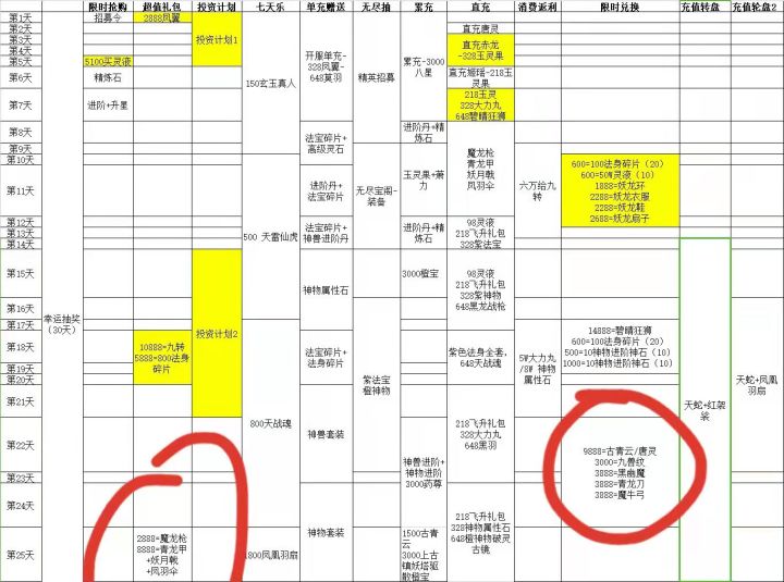 言归正传,第一天的2888仙缘的风翼礼包搞上,所有限时兑换,第十八天的九转法身和第二十五天的四个法宝,这些必买,其他的氪佬随意,但觉得性价比一般。