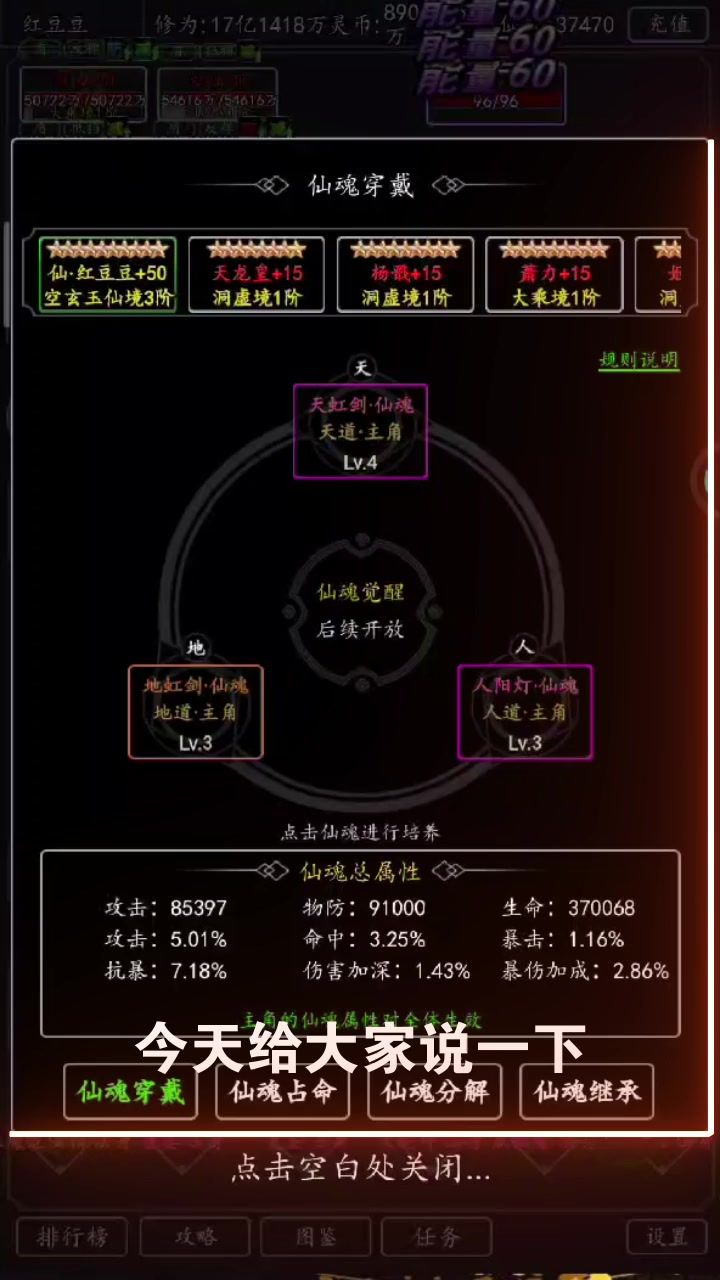 接下来讲基础洞府,有了活动的灵液,主角快速升红,功法买最低级的升阶,灵根灵阵13级就够用了,主升战阵和碗,这些没啥可说的,观星阁主点加主和战的,灵阵主点暴击,其他平均加。
