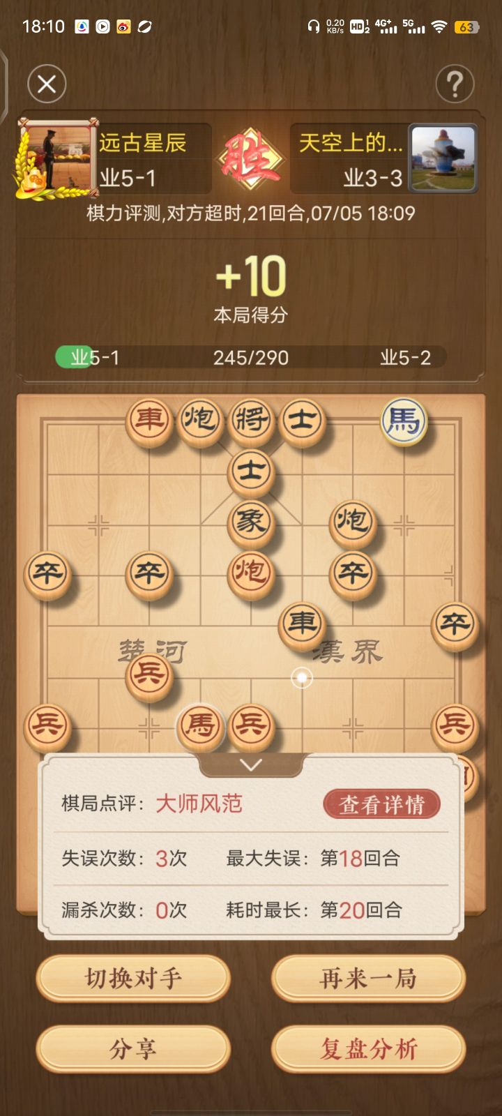 纪念下棋以来评分最高的一盘,开局中炮七兵平炮兑车盘河马,对面大哥竟敢冲卒挑衅,看样子是没记过谱了 记谱还是有用的hhh