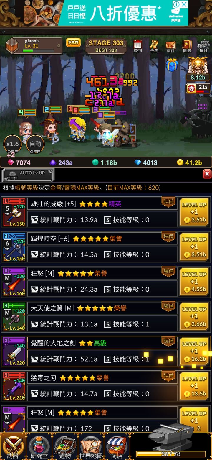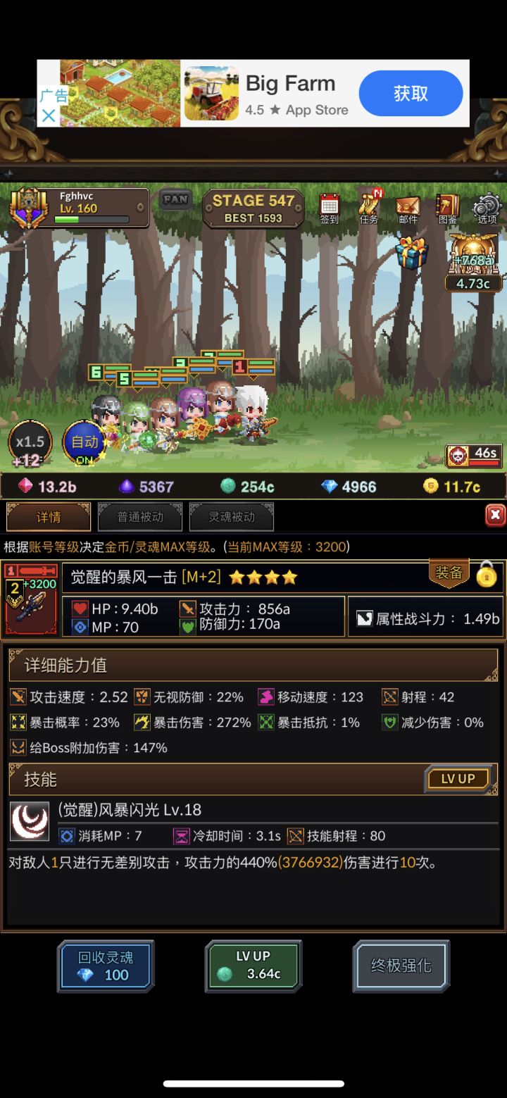 武器星级一点加成都没 !!!武器星级一点加成都没!!!武器星级一点加成都没!!!所以大家不要在意武器星级 主要就是看技能前期推图用暴风一剑和骑士誓言 一个是最强输出 一个是最肉坦克主要升级这两个就行 其他的随便选 推图主要就是肝等级自动合成和加速是在研究所购买的 接下来是关于如何灵魂掉落最大化灵魂掉落是关卡固定掉落×遗物被动加成×武器灵魂被动加成 下面放图 4把祭司武器都有灵魂掉落