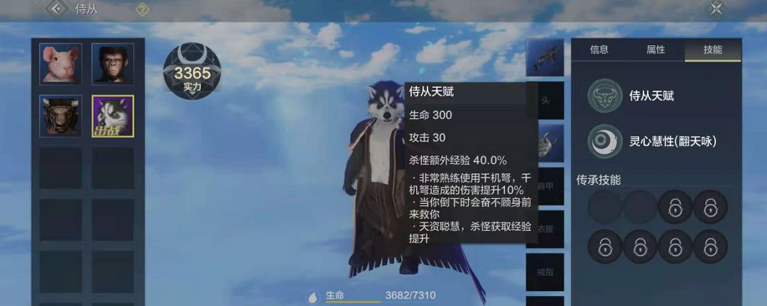 《妄想山海》中“哈士奇”也就是侍从“哈斯基”,因为它的天赋就是非常熟练使用千机弩,并且在装备千机弩之后造成的伤害会提升10% ,所以给“哈斯基”装备千机弩是最好的选择。不过游戏中侍从的装备是可以自己调整的,所以也并不一定只局限于侍从天赋。 《妄想山海》中“侍从”培养的方法: 1、等级:提升“侍从”等级可以通过战斗、喂食、刷图等方式,其中喂食是提升“侍从”等级的最快方法。 2、资质:“侍从”的资质可