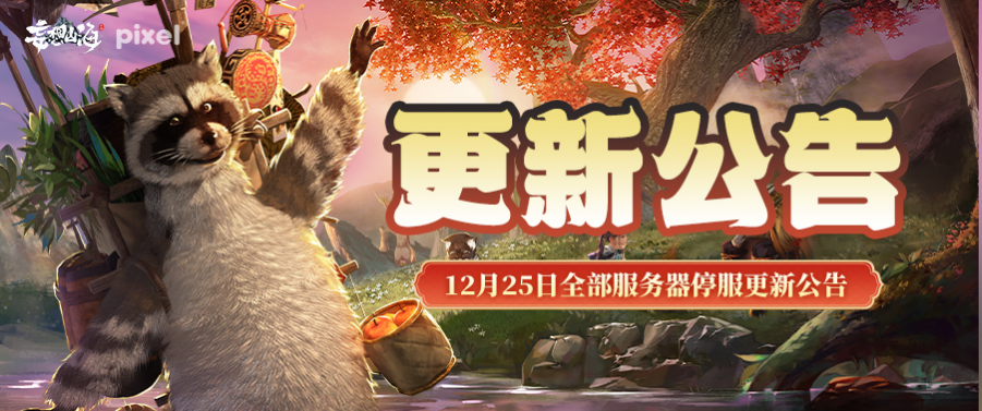 停服更新游戏将于12月25日08:00进行全部服务器停服更新,预计停服2小时,开服时间有可能提前或者延后:重点内容 雪族大挑战 1.【雪族大挑战】活动开启,可从福利页面参与!隐筑将概率刷新【雪狌狌小屋】,屋内将有【好斗的雪狌狌】出没,战胜雪狌狌、搜索雪屋中的家具,可获得狌狌雪饼新增钓鱼小游戏【雪怪钓手】,可在三山的冲浪摊位旁开启。活动开始后,需要在限定时间内在鱼篓内达成指定数量的鱼,