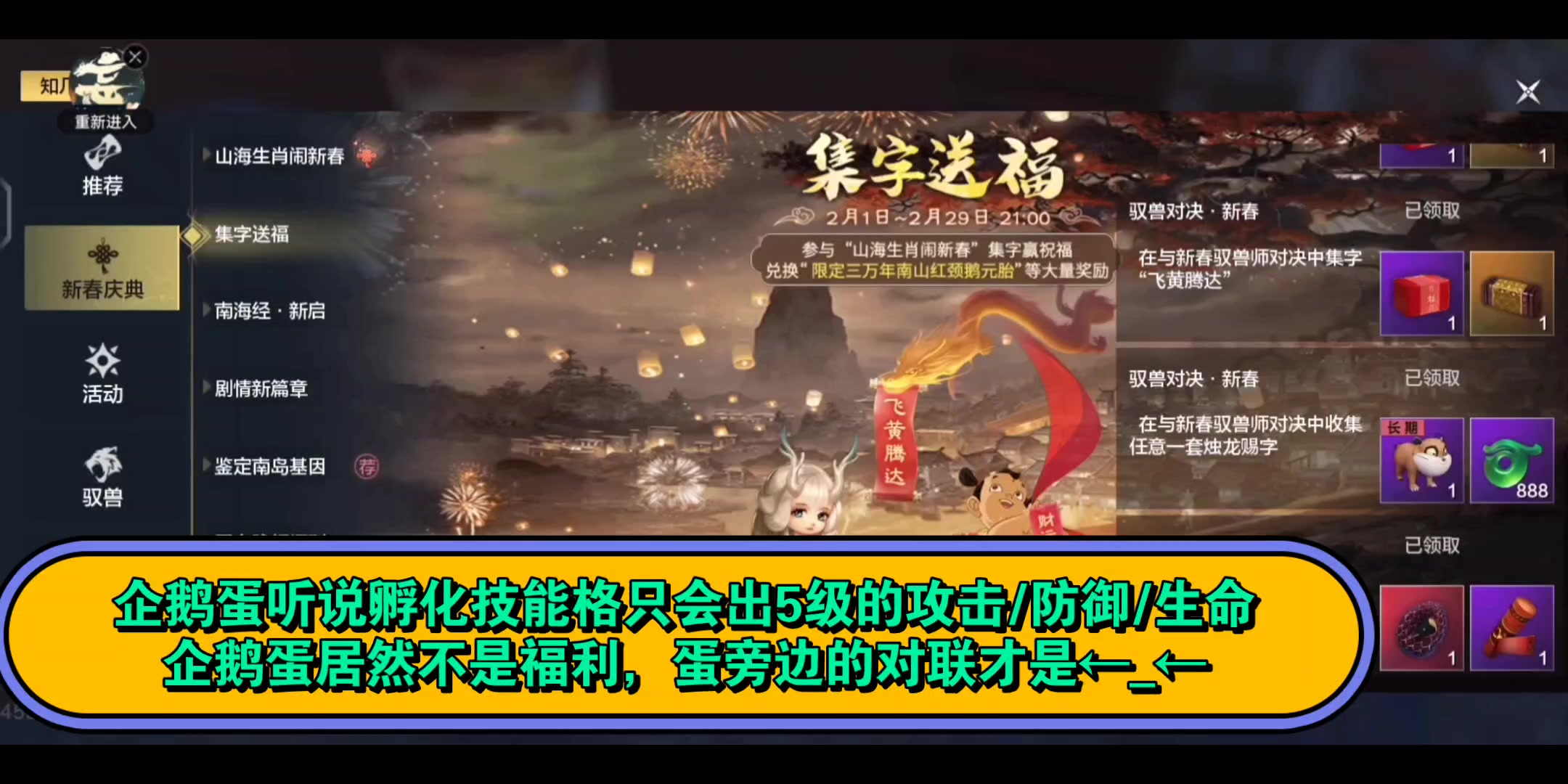 集字通关对联才是福利,蛋孵化扣技能。集字速刷技巧