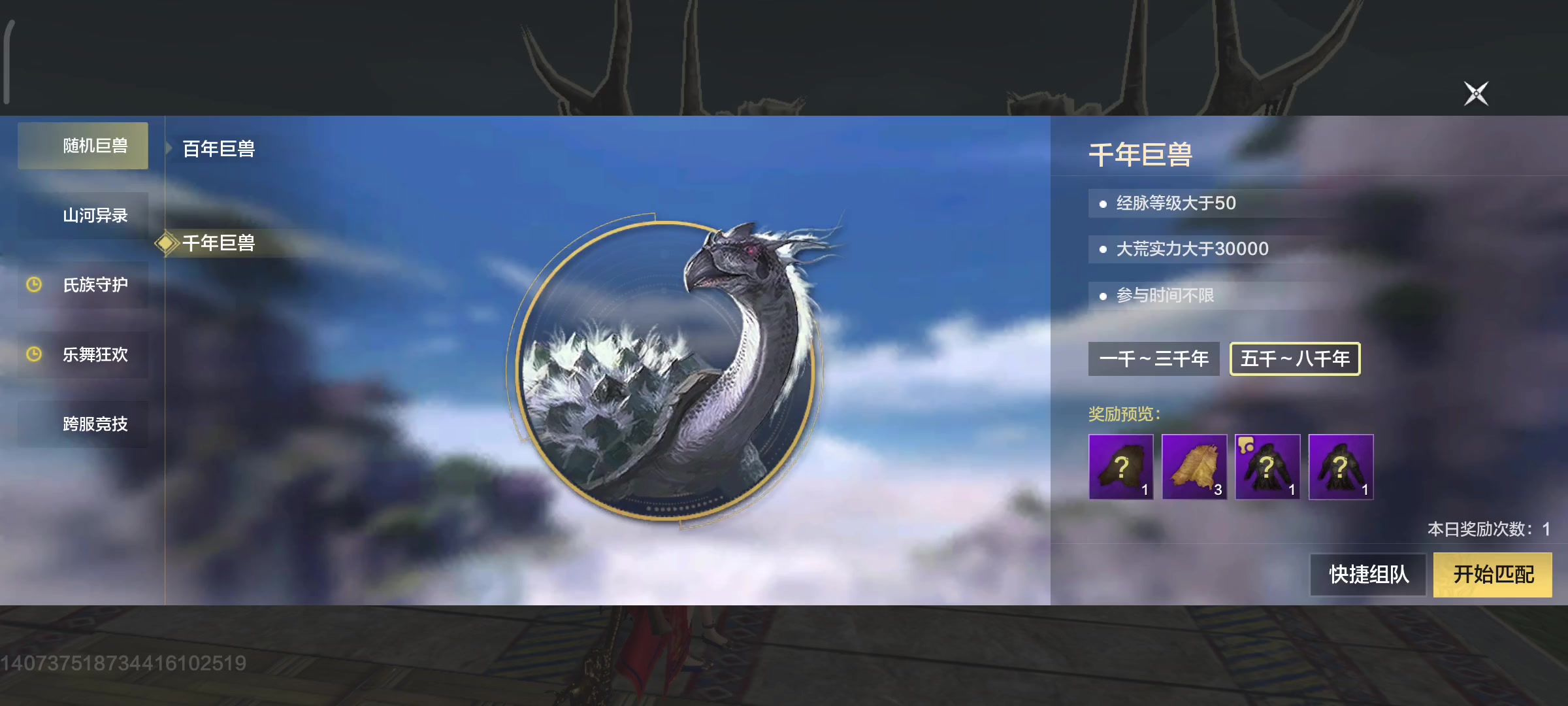 刚上线,我匹配了一次千年围狩中途游戏强制踢我离开了队伍 然后我就匹配不了,怎么点都没用[表情_生气]