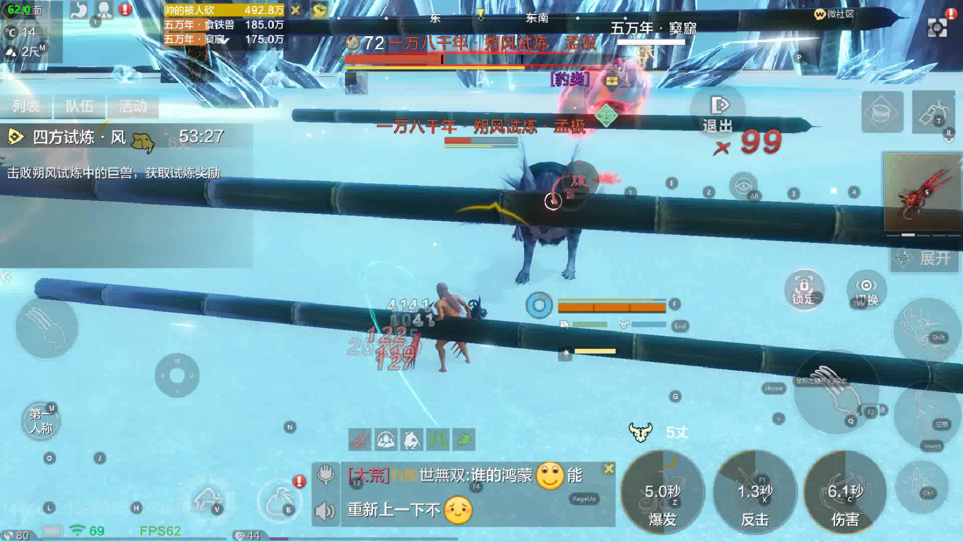 不知道怎么了我和我的窫窳合体了,平常我碰到这个超龙兽都要绕道走,一个技能能打我一半血。现在他放个大招,我都不掉血,不知道是不是窫窳无敌技能的原因。挂在他身上之后,我也不能动,周围怪全部吸引过来了,我还是一点血都没掉#妄想山海