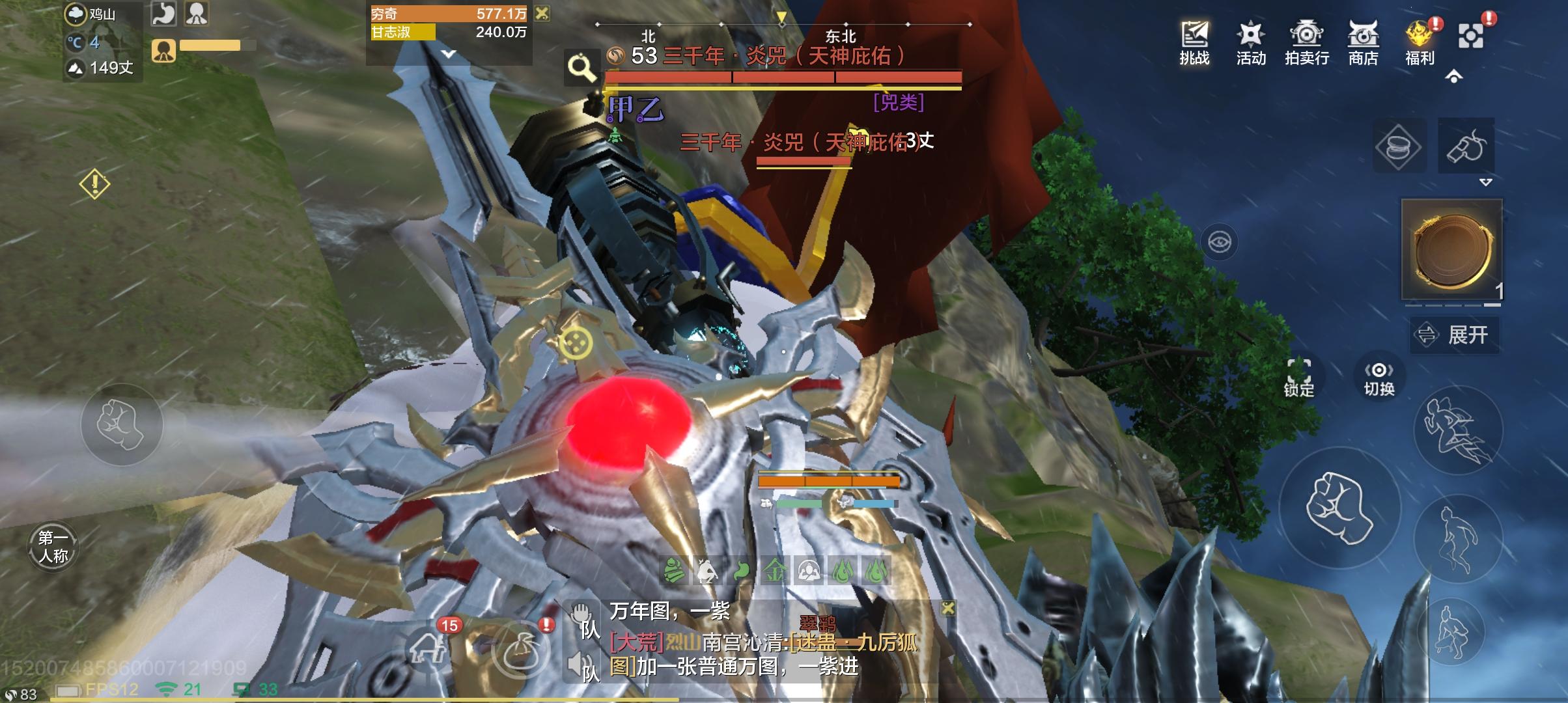 登录平台: 手游账号: 2504237061角色昵称: 甘志淑角色ID: 53宗梧山和553合并登录区服: 53区网络情况: WIFI手机系统: 安卓手机型号: vivo Y200i问题发生时间: 11点问题详细描述: 巨兽解印不成和弓箭,扇子打不到巨兽问题截图: