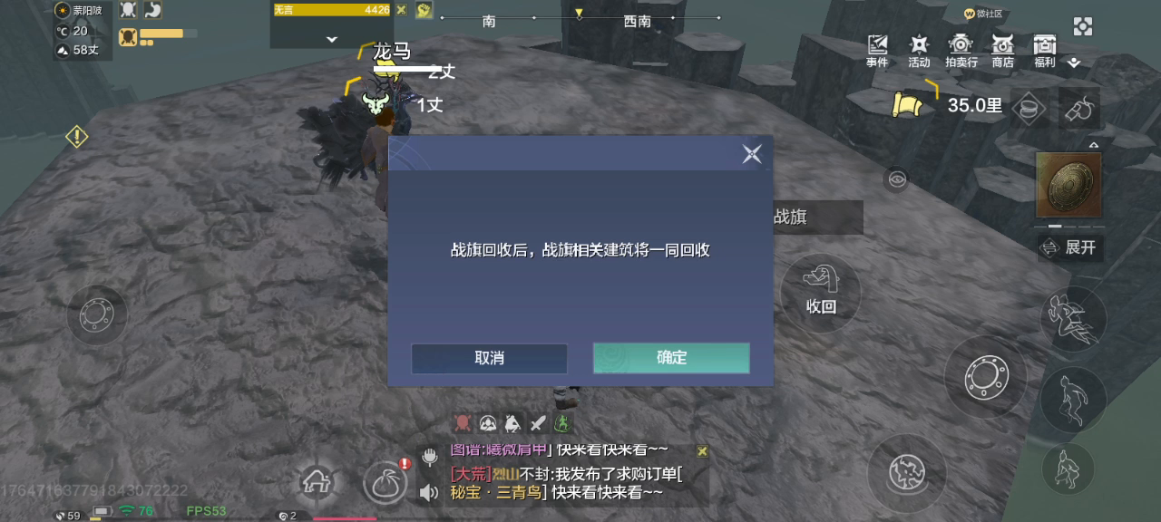 这面旗是我更新之前放的,更新完了之后就传送不了了,我大老远飞过来看看是不是被人砸了还是咋的了,结果还好好在这,但是无法回收,也无法传送😓,影响我游戏体验了,修复一下谢谢