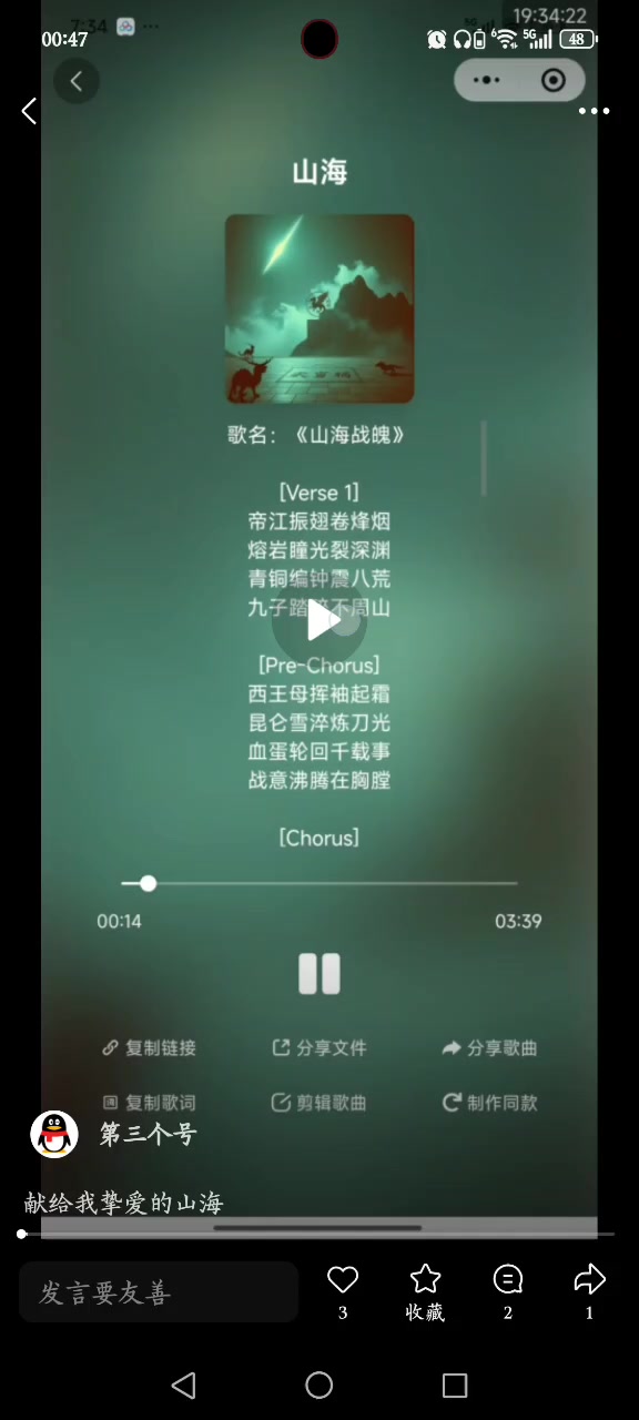 希望能在音乐频道也能早点听到,这个是山海真爱粉!!!
