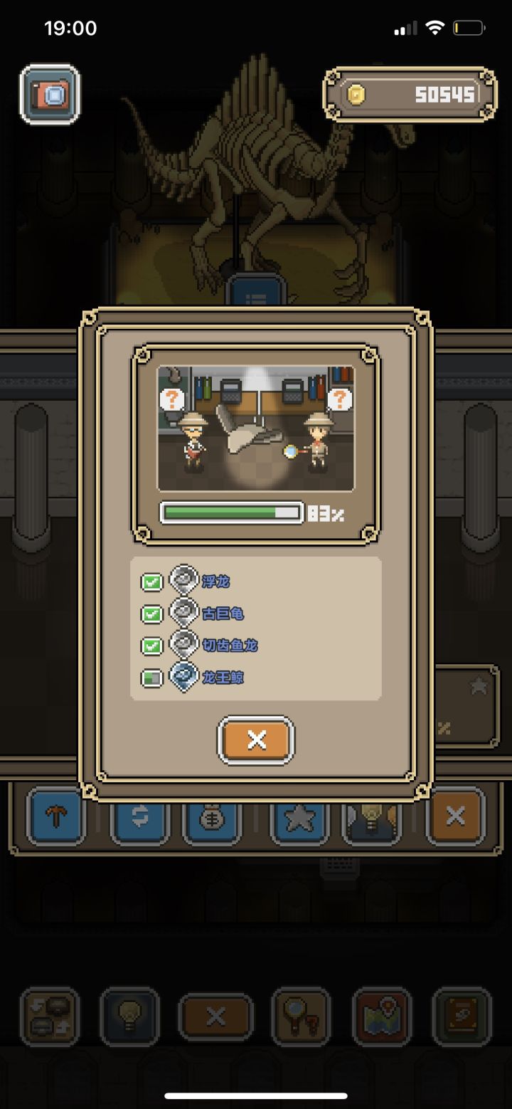 1.6版本玩的比较快,记得一共有两个隐藏第一个隐藏在四楼新开的几个恐龙挖掘过程中已经解锁了,忘记截图第二个线索比较好找,三银色一个铂金色,首先是是新出的银色切齿鱼龙,我猜测另外两个银色和铂金也是水生动物,果然龙王鲸鱼挖出两块,另外两个在银色水生中三选二。于是全部尝试之后截图