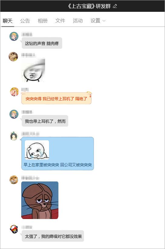 这段时间,《上古宝藏》的研发组遇到了一件可怕的事情......除了白天爆肝,晚上也是策划阿秃掉头发、程序猿敲代码、美术疯狂建模的重要时间。就在大家埋头工作的时候,毫无防备的,小埃头顶传来了“咚咚咚”的巨响和震动。前奏过后,便开始加入了多种“乐器”,嗡嗡嗡......当当当...... 从楼上传来的这一连串装修噪音,真的能让大脑颤抖。研发组急需安静的创作环境,尤其音频部的小伙伴,然而在晚上7点