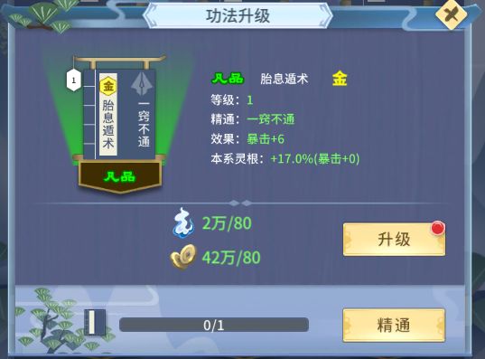 《功法系统》功法系统是玩家属性的主要支撑!1. 属性选择在我们的功法系统中一共有八种功法,每一种类功法只会提升对应的一种基本属性,下面我们就来看看这些功法都分别对应什么属性;绝学——攻击力秘籍——防御真诀——气血心经——仙法伤害遁术——暴击残页——暴击伤害招式——命中阵法——闪避;首选加攻击、气血、防御的功法。站桩式互殴,扛得住打的动才是第一要素!其次加暴击、暴击伤害、仙