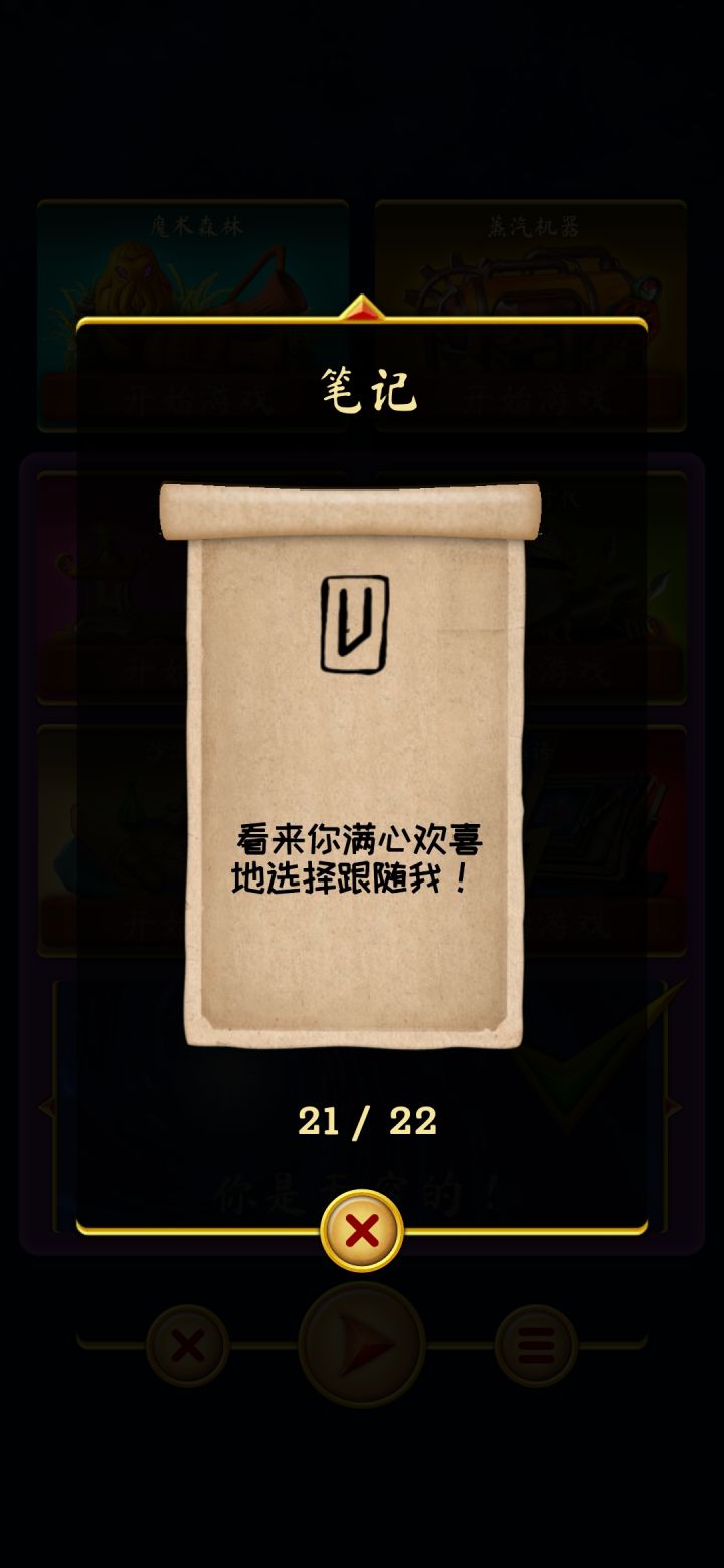 翻译有点烂,还有乱码,解谜难度尚可,有时候瞎点点就过了,把每个关卡的红蓝宝石收集全可以解锁额外两个关卡,得到的两个笔记对应两个结局,内容比较隐晦,大概意思是指失去的童年,我的理解就是……不忘初心牢记使命
