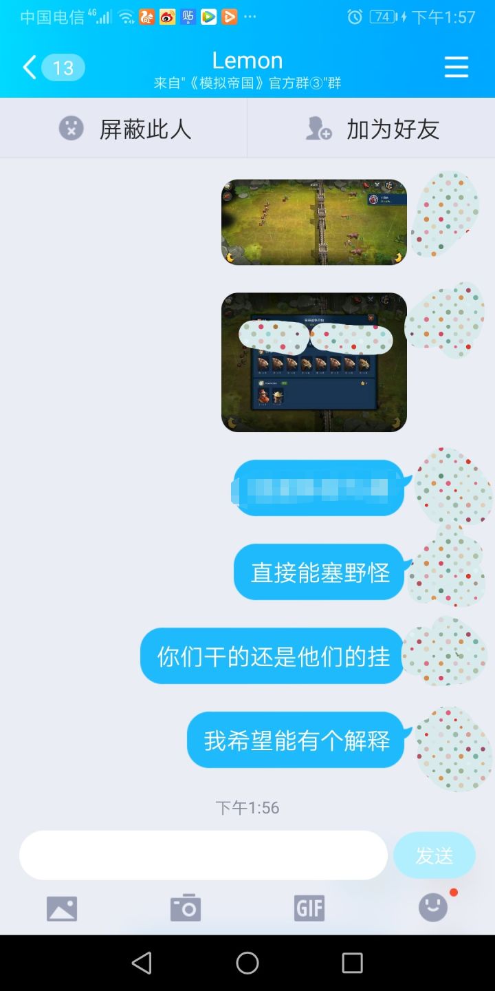 没错,这就是官方的态度,昨天的消息没回,今天说也不回,就当看不见。是的,弄官托你们官方就是在侮辱自己,我希望官方能够给个消息,到底是外挂,还是狗托?城里直接进野怪,4个兵一刀砍死148个,只有这两种可能,是外挂我希望官方尽快解决,是狗托就当我啥也没说,我不会再给这个游戏充一块钱了,大家真的不值得。😣🤔
