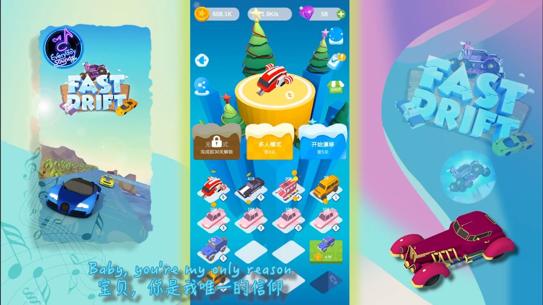 今天,我要推荐一款合成竞速类游戏,极速漂移 精美可爱的画风,保证你一眼就会爱上! 越野车,赛车,游艇都让我挑花了眼 炫酷的跑车们也在向我招手 下面就跟我一起体验一下吧 在这里,你可以参加各类赛事 多人竞速赛,单人挑战赛,无尽模式