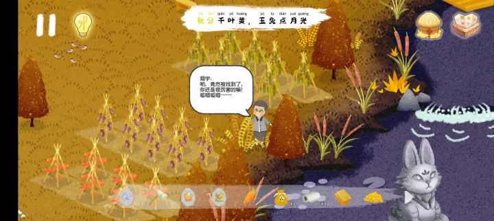 我现在秋天也快玩完了,但是我开始变得很累甚至有点玩不下去了,它的这个寻物真的不是说用不用心玩,有没有耐心好好找就能解决的问题。因为要找的东西很多很小且大部分其实都是硬藏,根本无法通过联想去找到他。然后就开始等时间,乱点。这个也可以忍嘛,我看看风景,记一点有意思的诗句也是有益的。到这儿我总体都还是很满意的。