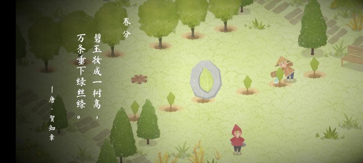 是那种偏向传递知识类的小游戏 但是又不是那么的烧脑,有很多很多小心思。每个NPC都是有自己的事情要做的,玩家帮助村民务农,到了什么时候 人们会做什么事情(以前人们没有日历 做事情会根据节气来执行) 需要你来帮助ta可能是浇水,又或者是烧火,还可能是疏通河流等等。你做完还会有诗句出现 在很久很久以前的古代就有诗人对这些农事做出了记录(或者说记载)好像你回到那个时代短暂的体验了一下他们的生活。有些诗句还会有拼音,太酷了,可以给小朋友玩,体验的同时背诗会更牢固吧哈哈。