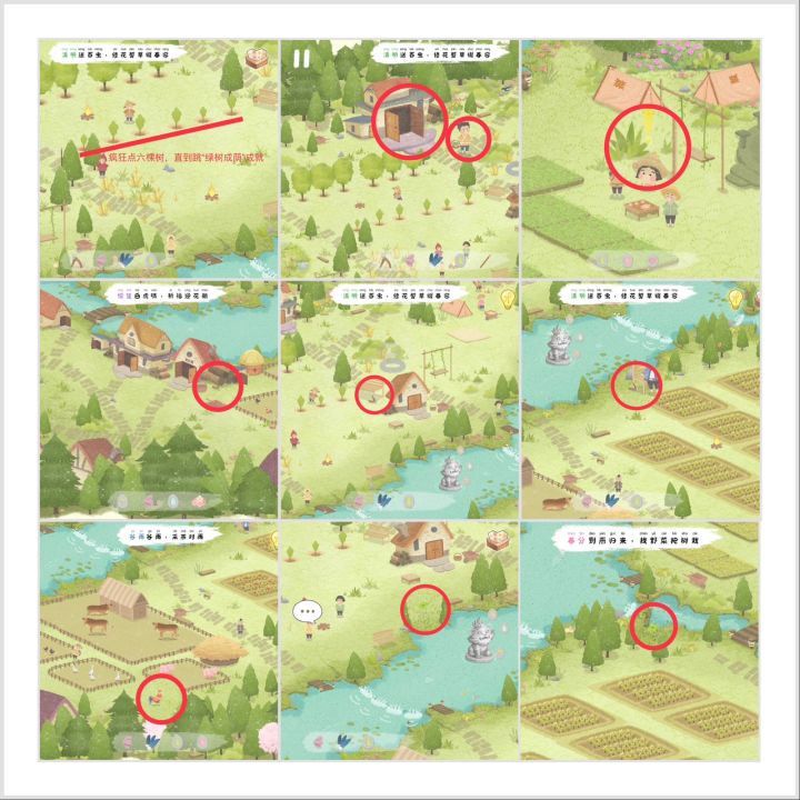 攻略贴,第一次做,我自己玩到哪儿,就一点点的写,后期会根据意见进行修改。请轻点喷,谢谢,😂前面的已经过关了,想试试攻略贴怎么做,所以从农夫钉耙开始春 季(一)立春1.找到钉耙(在蓝色小房子那里仔细看,我的已经捡过了,有可能位置会不一样),交给农夫。2.将找到的三袋花种洒在农夫开垦好的田地上,不要急,种子很好找,就在很显眼的位置。(二)雨水触发雨水奶奶的对话,天上会有四团乌云,如果我没