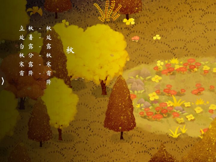 为了偷懒,所以有很多位置没有贴图,就会导致圈出来的地方什么也没有,但是没有关系,你的游戏里可能会有,图里有没有不重要,重要的是那个位置它可能存在。成就:1、金风玉露:完成秋天主线任务。(这个根本不用管,只要玩下去玩过了,秋天就可以得到。2、无獭生还:在百分百命中的情况下使得旱獭们投降。(①白露:打地鼠游戏,眼疾手快3、完美计算:得到两个柿子时,没有剩余苹果、山楂和石榴。(①霜降:先看算式,