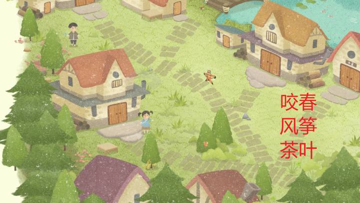 咬春任务相关物品:白萝卜触发时机:立春时,小男孩(镜头会引导过去)结束时机:惊蛰完成时,小男孩将带着失望走进家门。风筝任务触发时机:惊蛰完成时如图的小女孩。相关物品:棒棒糖、风筝结束时机:清明节气完成时,小女孩会长长叹一口气~PS:看见房子烟囱上冒的烟了吗,去“化缘”吧~,没有完成咬春任务也不影响,农民伯伯很大度的茶叶任务触发时机:谷雨完成时,旁边的女人出感叹号小游戏:理茶叶