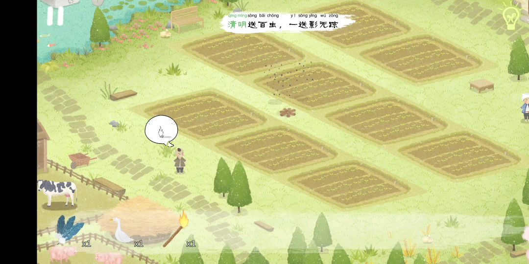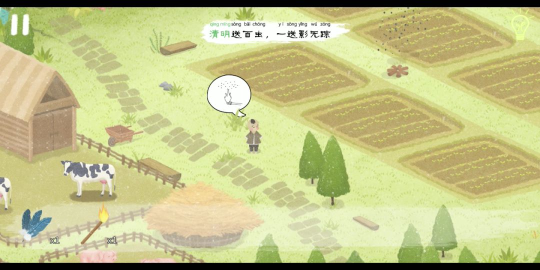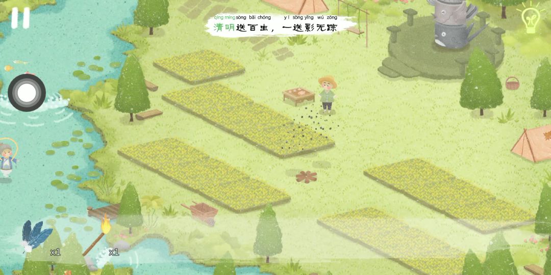 不知道为什么录屏有杂音_(:з」∠)_ 画风很可以噢,配乐也挺好的,玩起来挺简单的。但是互动很少,只有门可以打开关上和惊蛰那里的洞有互动。能加些互动会更好,比如说点人物有对话,点水面能起波澜这些。 还有个缺点就是,感觉自己真是个局外人。