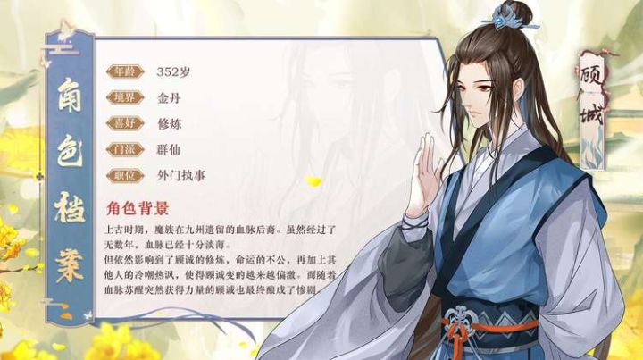 各位道友,好久不见!今天要介绍的这位道友身份稍稍有些特殊。顾诚其实是上古时期魔族在九州遗留的血脉,虽然经过了无数年,血脉传承已经十分淡薄,但依然影响到了顾诚的修炼,他十几年的努力可能还敌不过别人的数月之功。努力没有得到回报,再加上其他人的冷嘲热讽,使得顾诚变的越来越偏激。在血月复苏的时候,顾诚也发现了自己体内的魔族血脉,而随着魔族血脉的苏醒,他开始逐渐变得强大。突然获得力量的顾诚,开始变