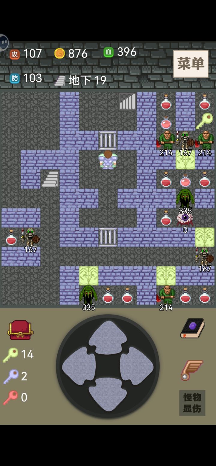 每一层都先去开商店(开商店的路一般怪会比较好打,找好打的路往前走就好),我是除非必要打的怪打不了会加攻击,其他一般都是加防御。每10层一个商店,越往后同样的钱加的攻击和防御越多,尽量省钱到后面用。地下1~10层注意蓝钥匙能不用就不用(省下来去拿铁镐⛏、盾),开商店后先拿一些比较容易拿的红宝石和蓝宝石(时刻注意钱到了就去商店买加防御,这个阶段我好像是加了五次才过),等到攻击升为13,可以考虑去拿铁