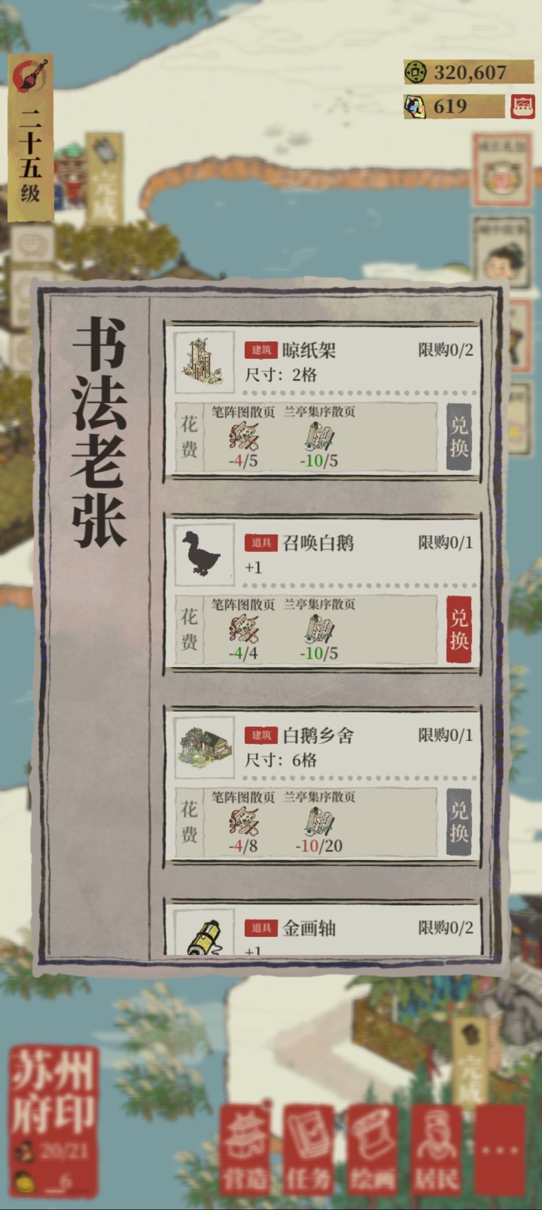 最近一直有资源兑换活动,结果点开公告却发现…… 这啥东西?我咋没有呢?之后一个一个图去找商店兑换。 这里我就稍微地粗糙的整理了一下,应天府三个图+苏州府四个图+杭州府一个图,一共八张图的商店、可兑换物品和需要资源,方便大家查找。 如有错漏请大家在评论区指正。 话不多说直接放图。 1.应天府秦淮河畔 2.应天府应天城郊 3.应天府丽娘宅邸 (图中标错名字了请忽略) 4.苏州府阊门 5.苏州府虎丘 6