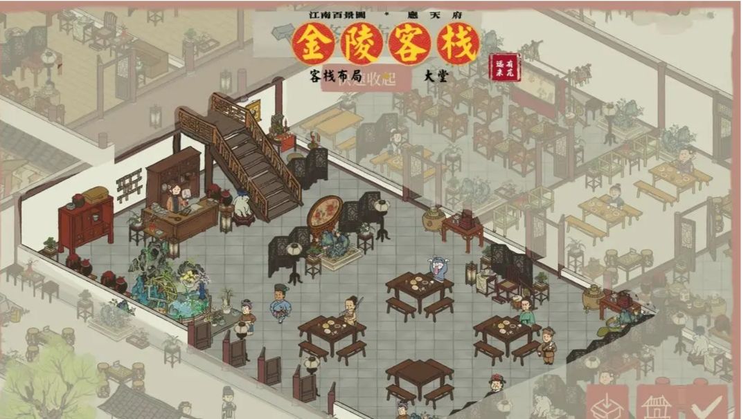 应天金陵客栈布局:大堂、演艺厅、雅间、庭院、后厨