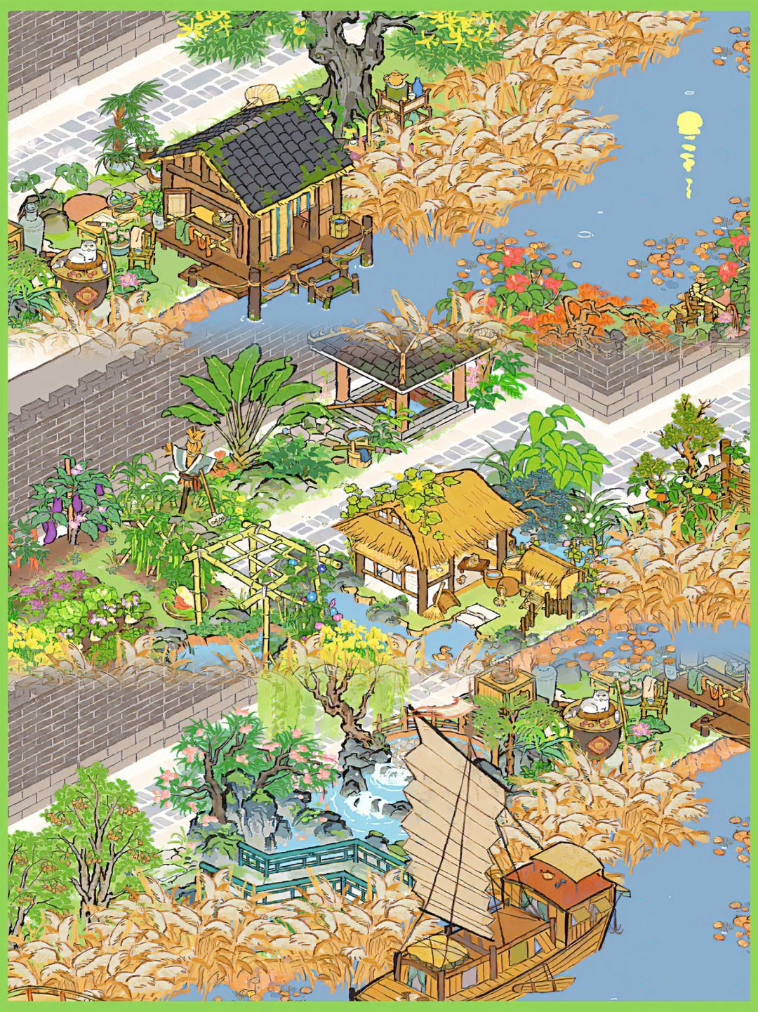 💚图文包含“草稿地布局”及“个人最重敲定”的布局 💚建筑:香粉厂、印刷厂(年历+经书)、溪畔悠悠、四级民宅、五级民宅、碎金泉、芭蕉林、树荫亭、瓜瓜藤蔓、(各种花圃、涵露台、小石山、鸟食台、白茅、棣棠|这些花圃可替换) 💚推荐布局地: 📍城内·暗香边、广陵春、风雅边 📍城外·惊鸿边、烟柳边、白鹤边、春风边、青山边、斜晖边、 ❣️也可以根据自己现有的位置选择布局地 💚环境值:优秀 💚 #江