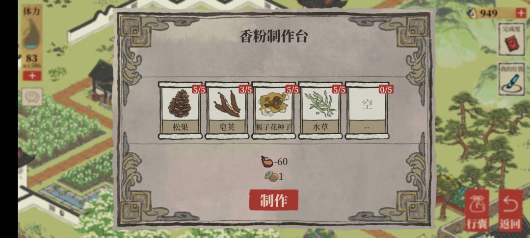 经过漫长的穷举,收获400多份废料,终于试出了松风青衿的配方!! 松风青衿=松果*5+【皂荚】*3+【栀子种子】*5+水草*5。 这个配方最大的陷阱就在于里面的栀子,【不是指栀子花!】,而是指【栀子种子】