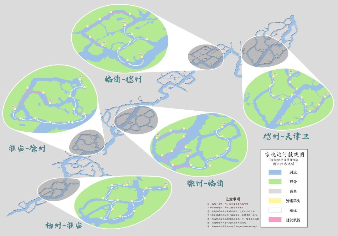 我把整个运河的航线进行一个大的整合,节选出五段最主要也是最常用的航线规划图,目的为的是化繁为简 不懂的或者不想费脑子的小伙伴可以直接照抄,看自己的游戏时长&频率去选取更适合自己的航线 可以总结为,远程少轮,近程多轮为原则,当然也可以采取近程单轮的佛系玩法~这就取决于你了。 首发TapTap江南百景图论坛,禁止商业转发,可游戏群内使用~