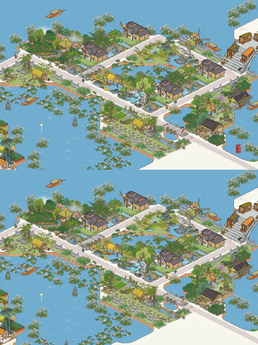 建筑: 紫藤绕樟(平替其他2×2树) 蕉叶覆梦、香粉厂、玉器工坊、 旧垣烟树(平替装饰植物) 树下圆凳、半亩油菜、(这两样不够的可替换别的)、 香粉厂内的花圃可以替换其他花圃,为了保持环境优秀,建议使用花圃。 坐标:扬州府·画阁边|叠石边|西王母像 #江南百景图 #江南百景图扬州府 #游戏种草计划