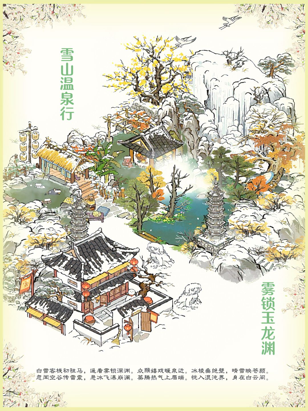 建筑: 紫藤绕樟、桐花深处、春月桐华、烟雨长水道、迎春山泉 坐标: 扬州府•圣贤边、暖池边、三丁边 #江南百景图 #游戏种草计划 #江南百景图扬州府
