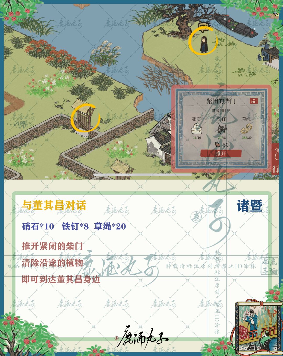 主线剧情&彩蛋&宝箱钥匙&探险全景图 ⭐️主线剧情——图1-图7 ⭐️彩蛋——图8-图12 ⭐️宝箱&钥匙——图13-图14 ⭐️探险全景图——图15 ⭐️主线剧情 🌿图1-与董其昌对话 🌸推开紧闭的柴门,清除沿途的植物 🌿图2-相对的铜鹤 🌸清除挡路的百合花丛,旋转铜鹤 🌸玉山果通过点击乌篷船获得 🌿图3-与NPC对话·1 🌸清除挡路的牡丹花丛,达到NPC身旁 🌸完成相对铜鹤,解锁迷雾达到NPC