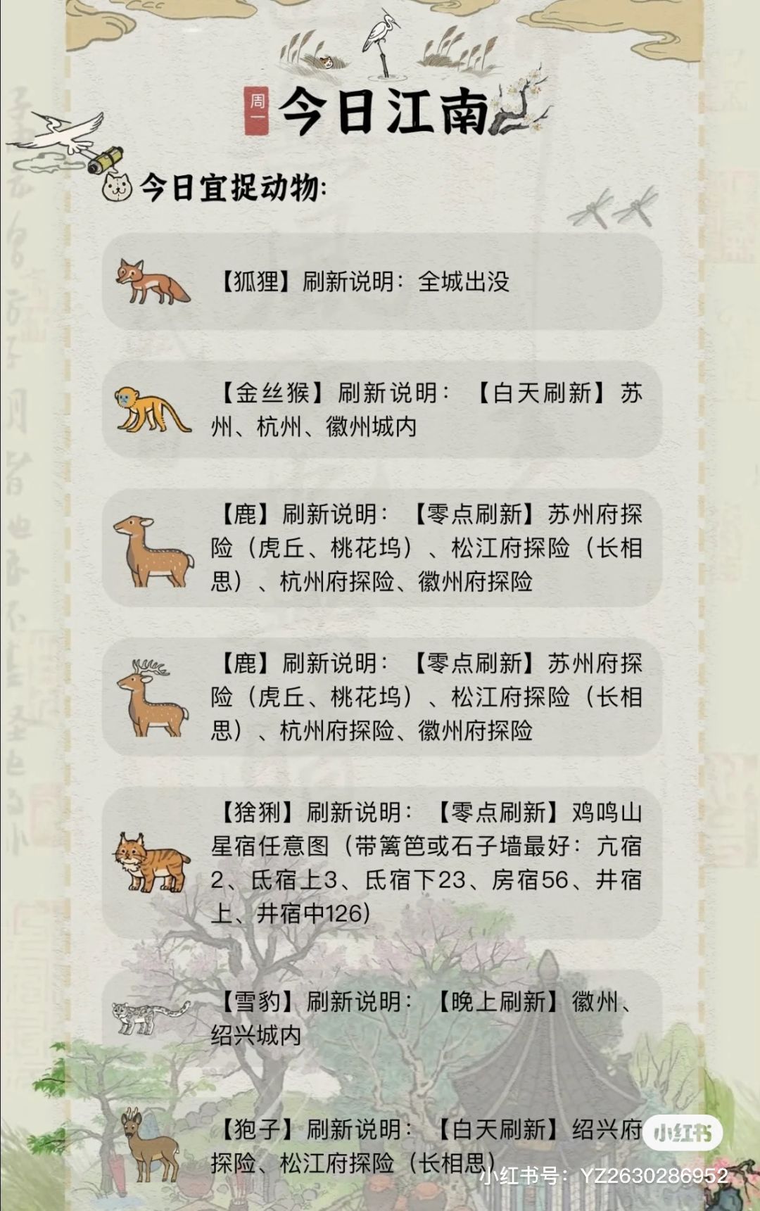 我!终于!!把这个小程序上的截全了~有时差的姐妹终于也可以按时抓动物啦!#江南百景图#江南百景图攻略#江南百景图小动物