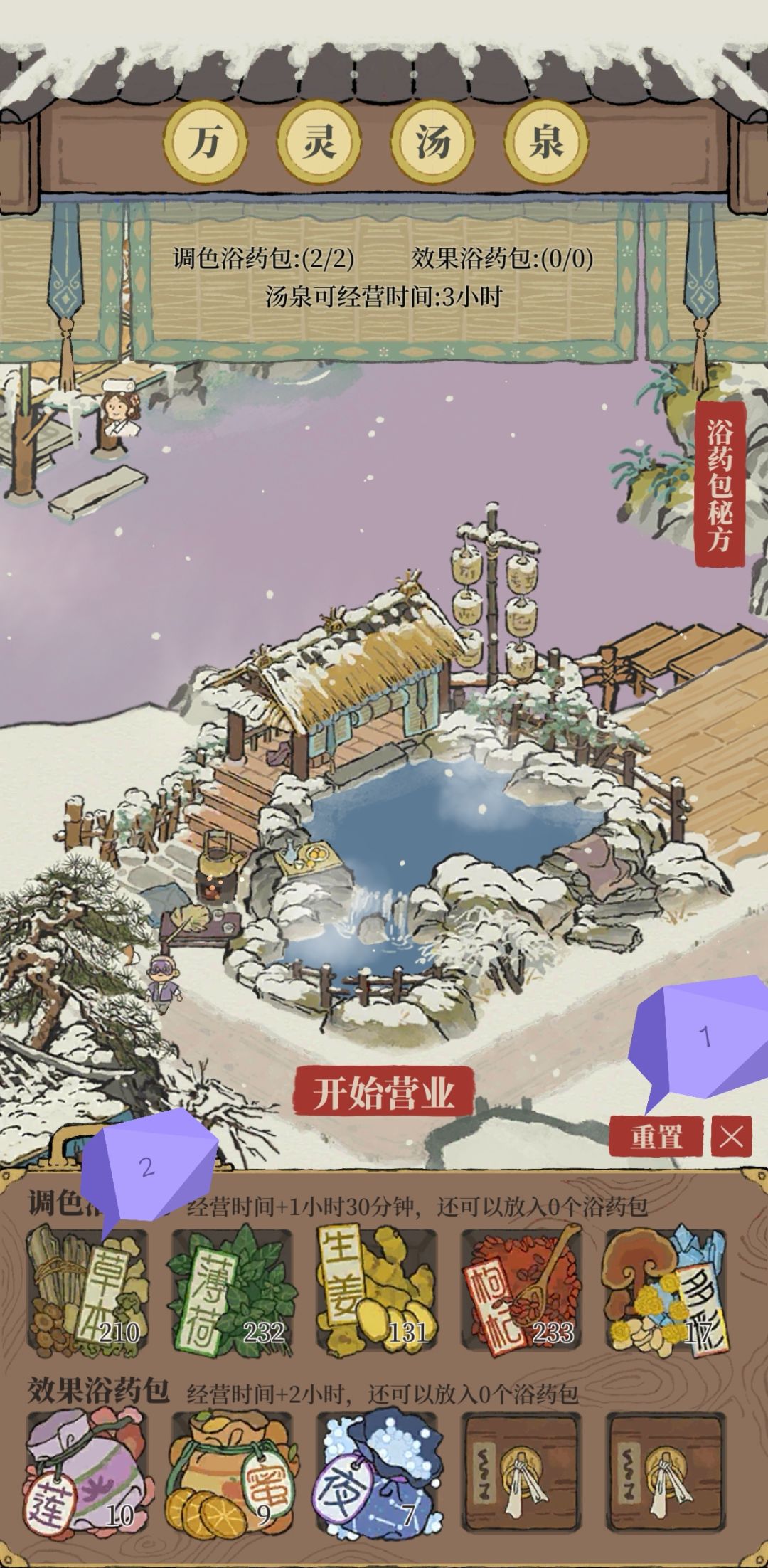 可以延续上一次汤池颜色#江南百景图 点重置再拖草本药包,汤池的颜色可以保持不变哦