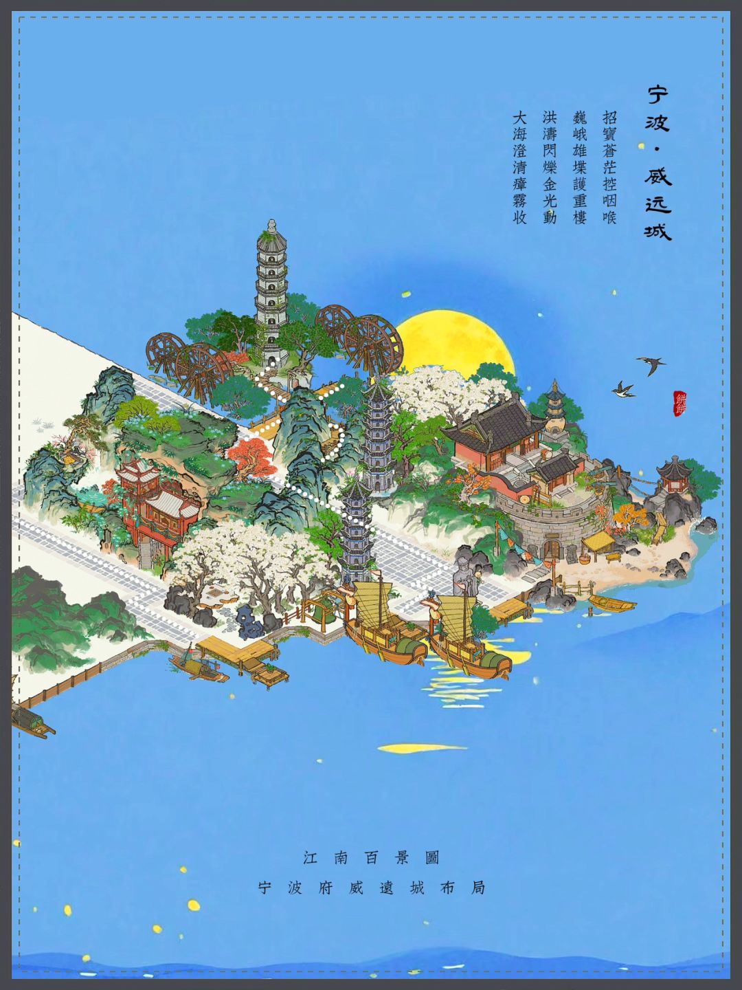 🍃江南百景图|宁波府威远城 ⛏️布局小技巧: 💡金字塔型布局:找到一个最高点向周围延伸布局,且布局连贯又路路通。#游戏安利#游戏安利#国产游戏#游戏推荐